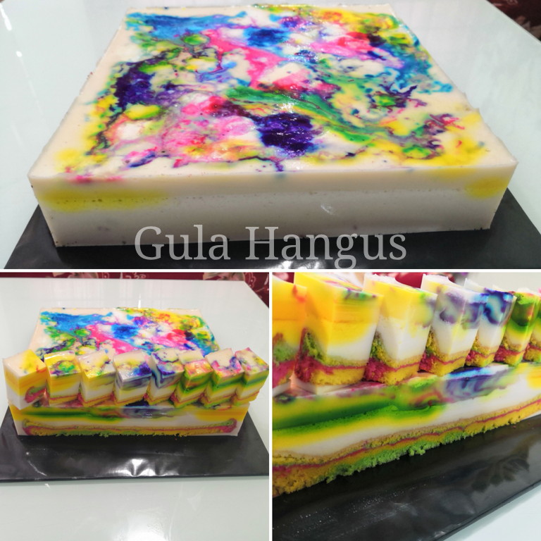Kek Pelangi Puding Karamel Gula Hangus Food Mudah My My Inkuiri Com